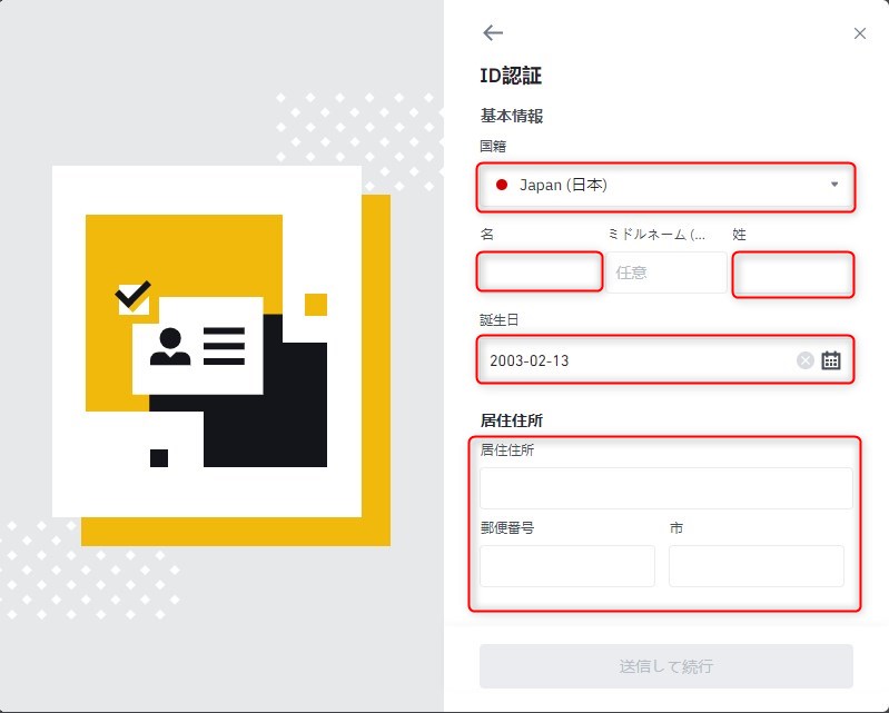 名前・誕生日・住所を記入します。