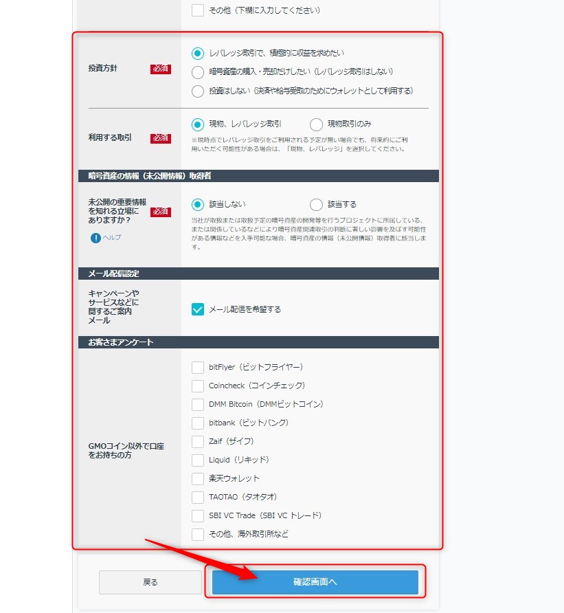 確認画面が出るため内容を確認し、一番下のチェックマークを入れ次の画面に進みます。