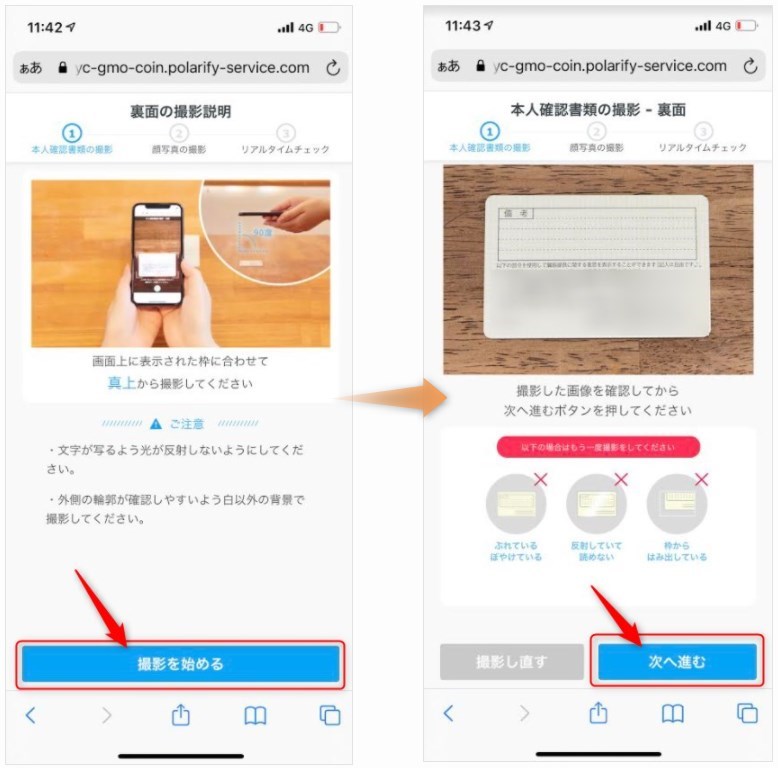運転免許証を選んだ方は、指示に従って表面の撮影をスマホで行います。