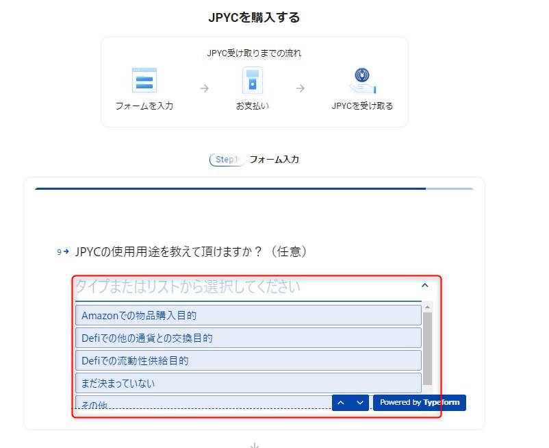 ②JPYC代理購入フォームに必要事項(商品リンクや金額、名前、住所、ウォレットアドレスなど)を記入。