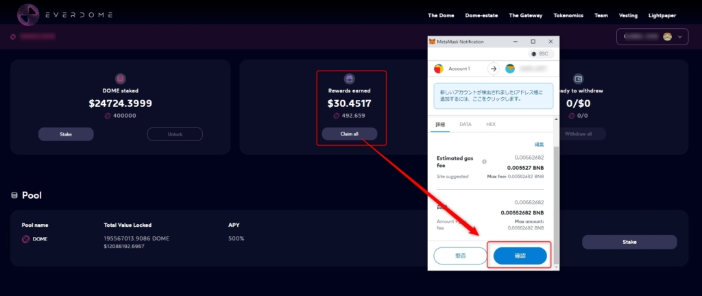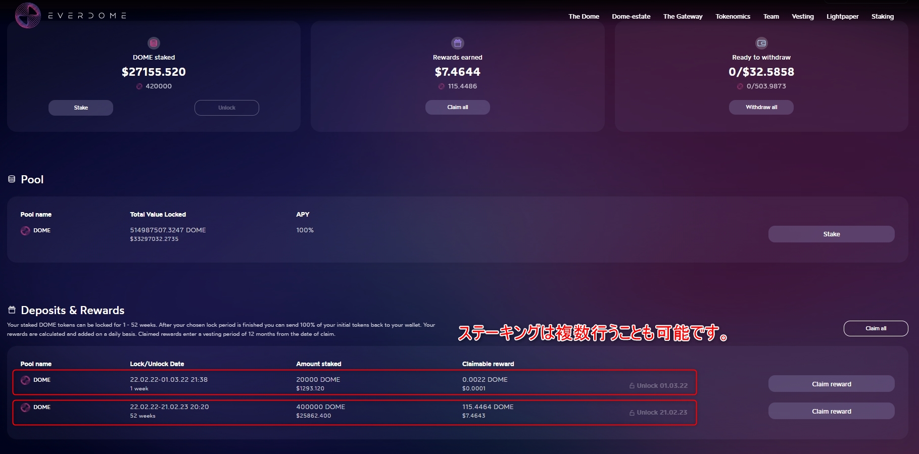 EVERDOME(DOME)ステーキング方法を画像で解説