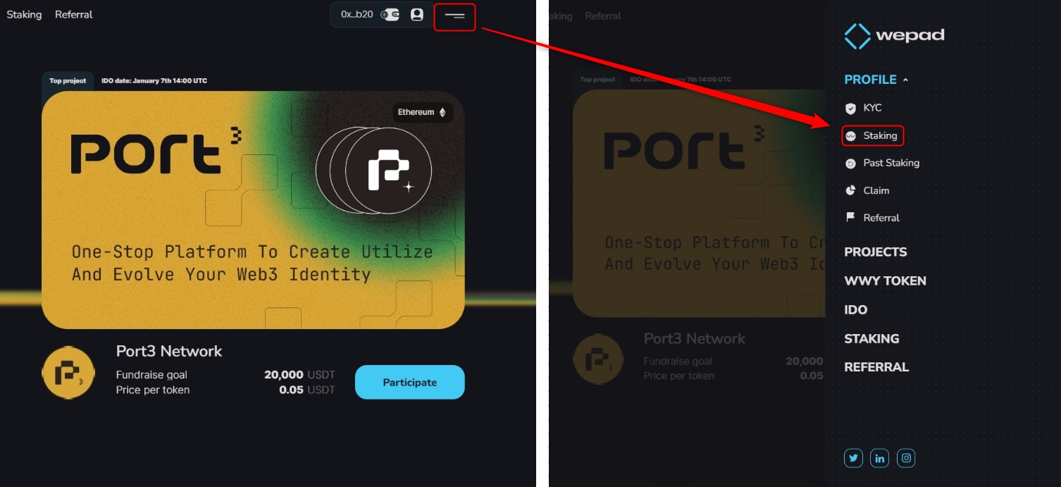 「KYC登録」と「WWYのステーキング」が完了したらPROJECTから参加したいIDOを選択します。