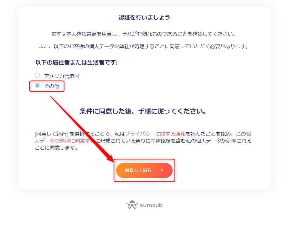居住区がアメリカ以外の人は「その他」を選択して同意します。