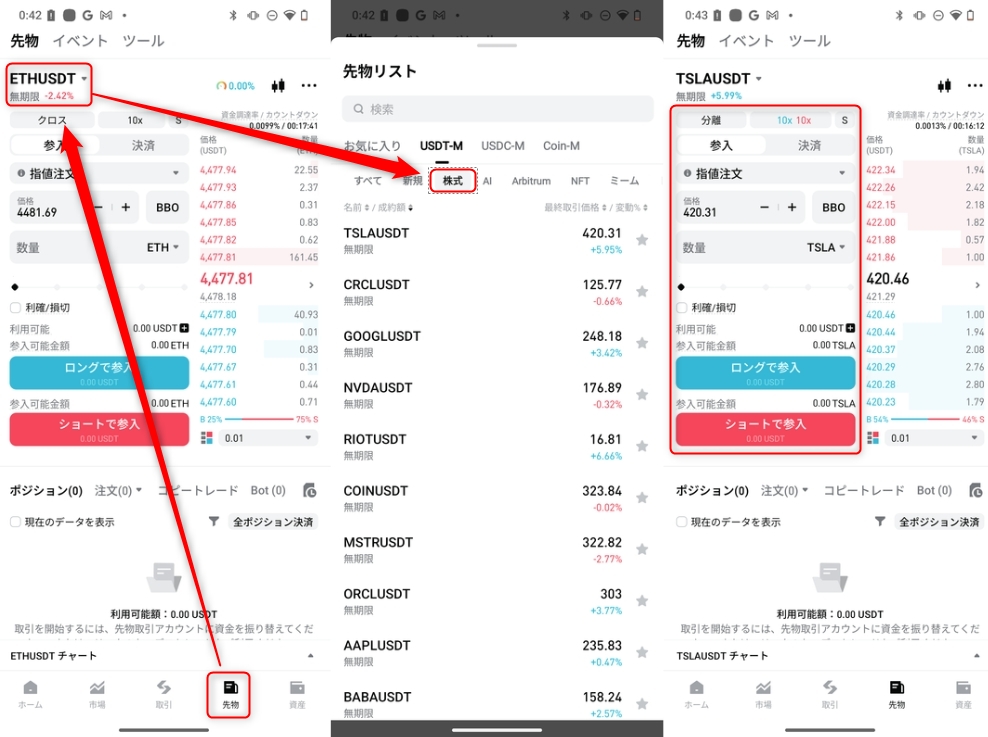 「先物」から「株式」を選べば、レバレッジを活用した取引も行えます。