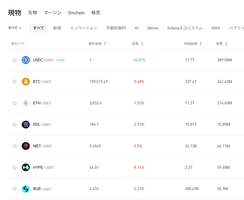 ✅ 3. 通貨ラインナップが豊富で、話題トークンにも強い
