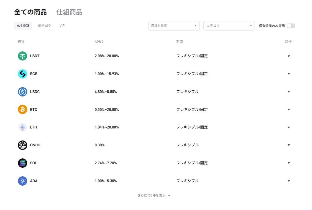 Bitget Earnでは、ステーキング・ローン・コピー取引など、資産運用機能も豊富。