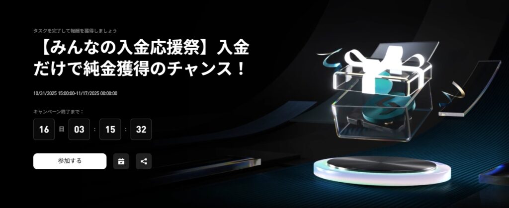 Bybit終了にあわせて、Bitgetでは「みんなの入金応援祭」を実施中です。